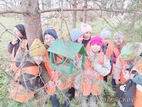 Ребята развесили кормушки для пернатых друзей, а затем наполнили их вкусным угощением! Теперь у птиц нашего города есть свой столовый дворец.